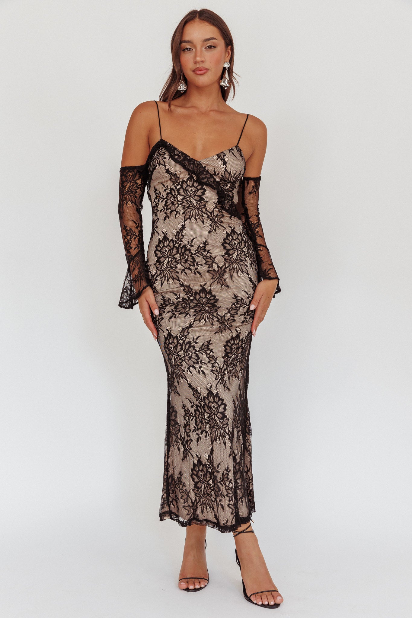 Zarah Off-Shoulder Sleeve Lace Maxi Dress Black