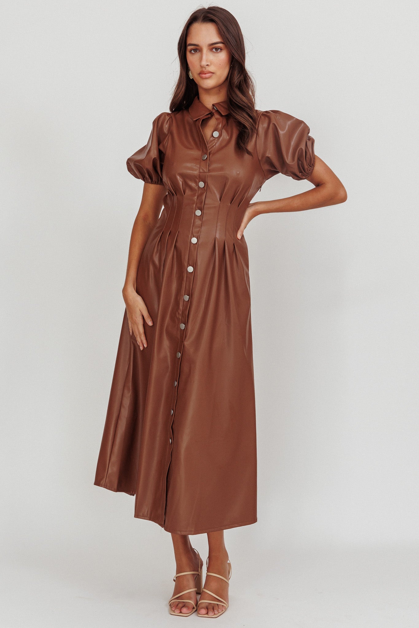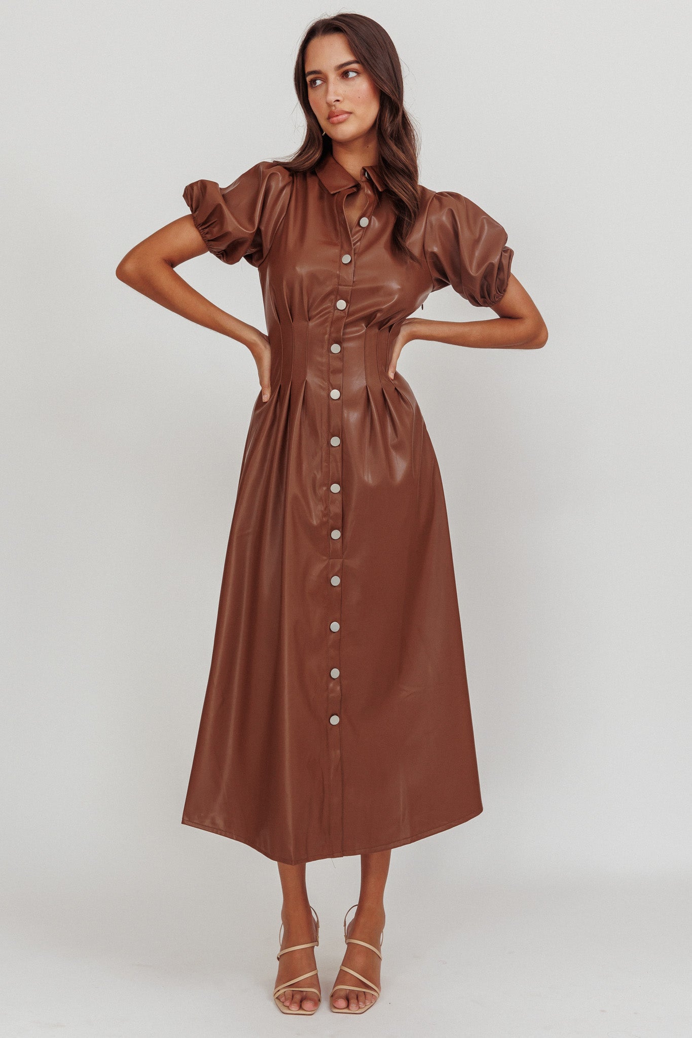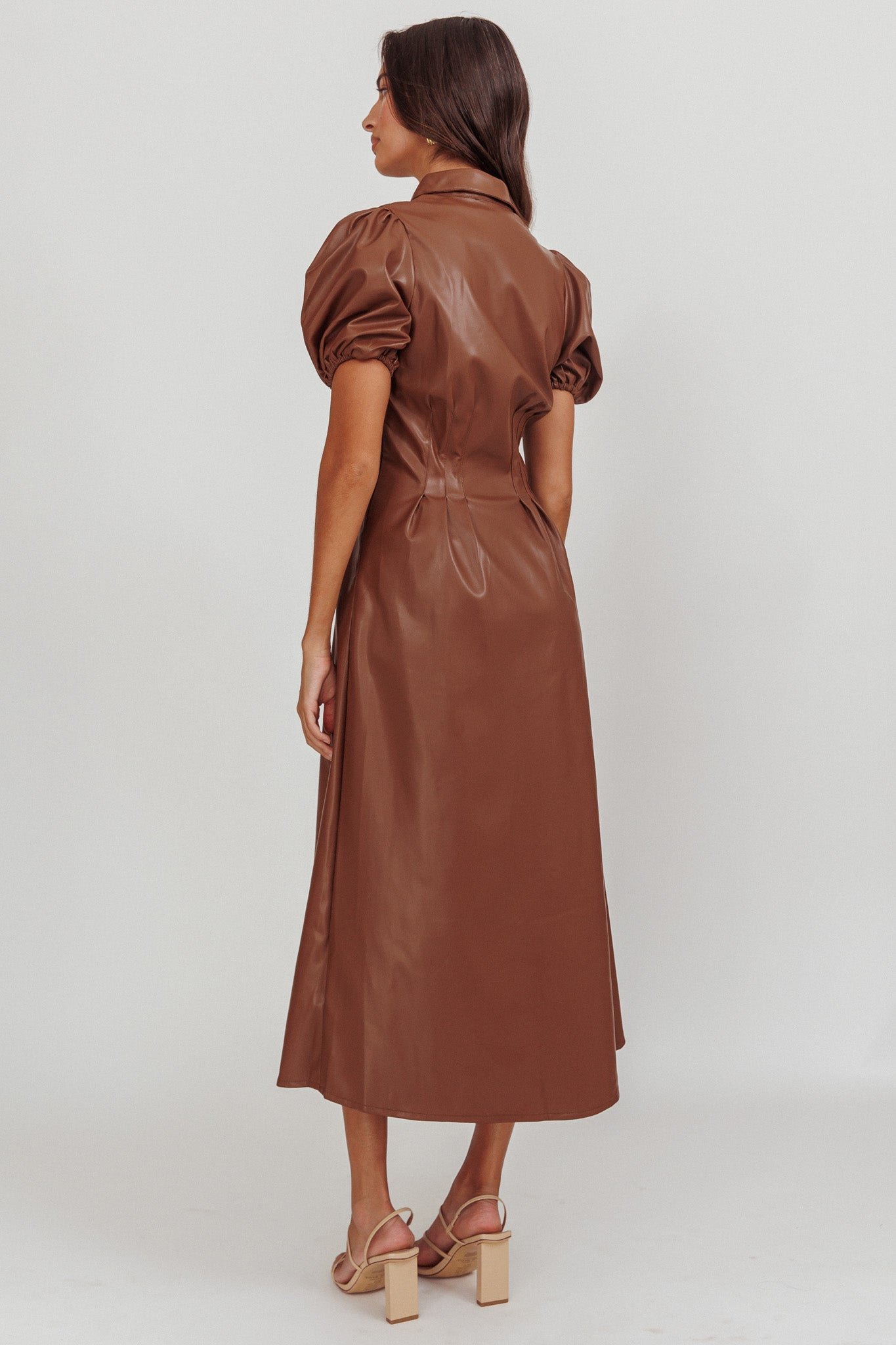 Zurich A-line Puff Sleeve Midi Dress Chocolate