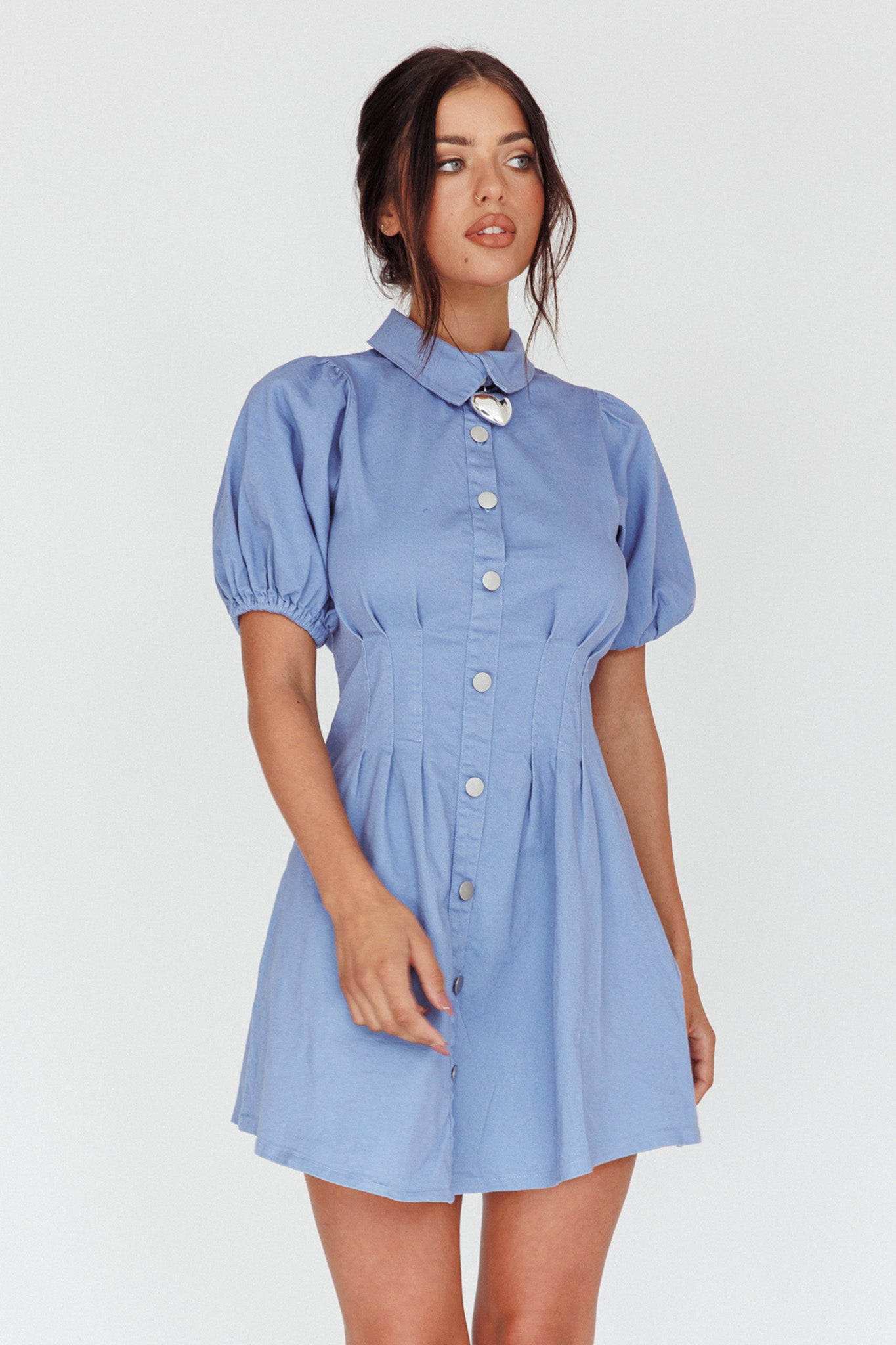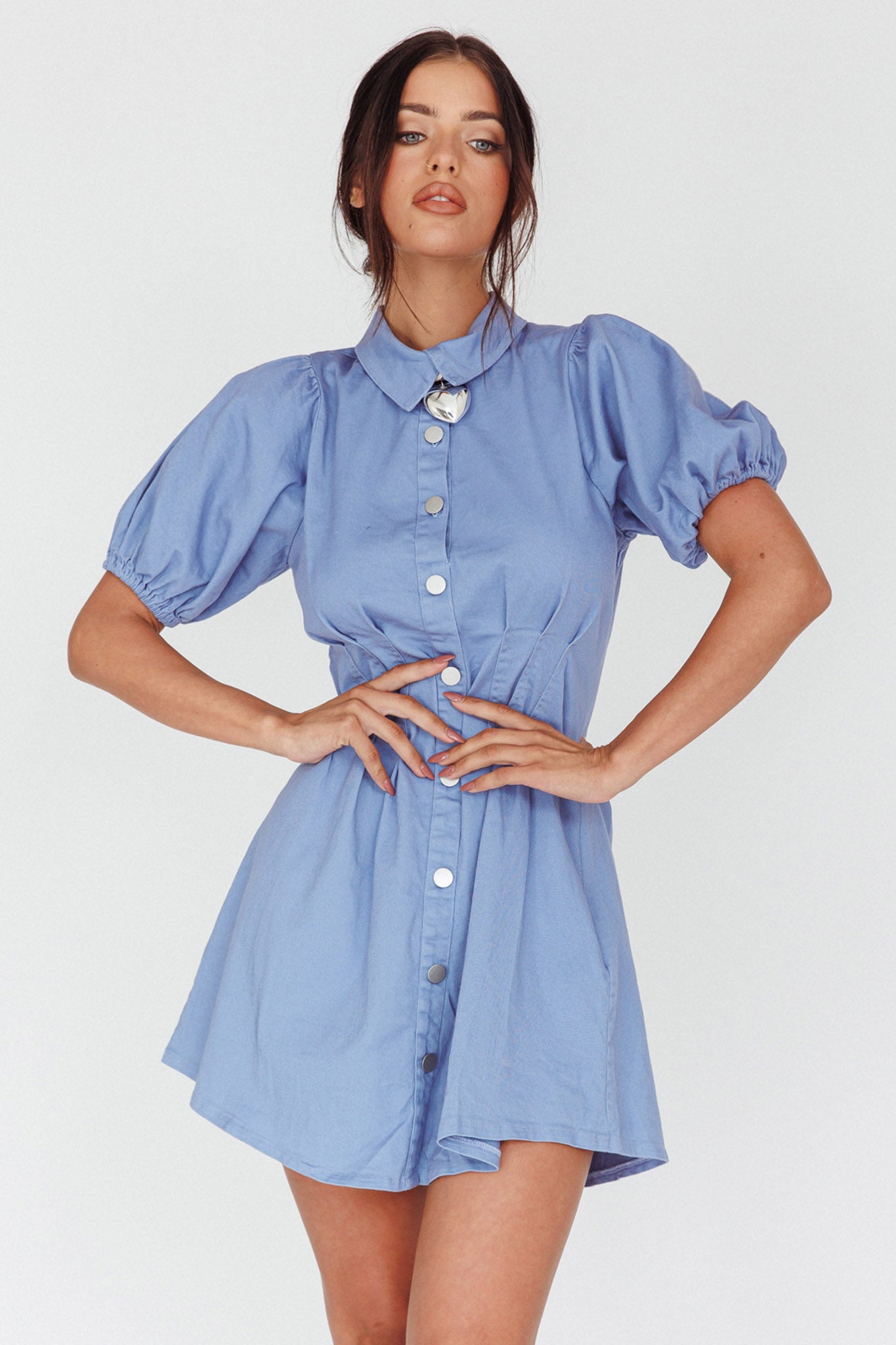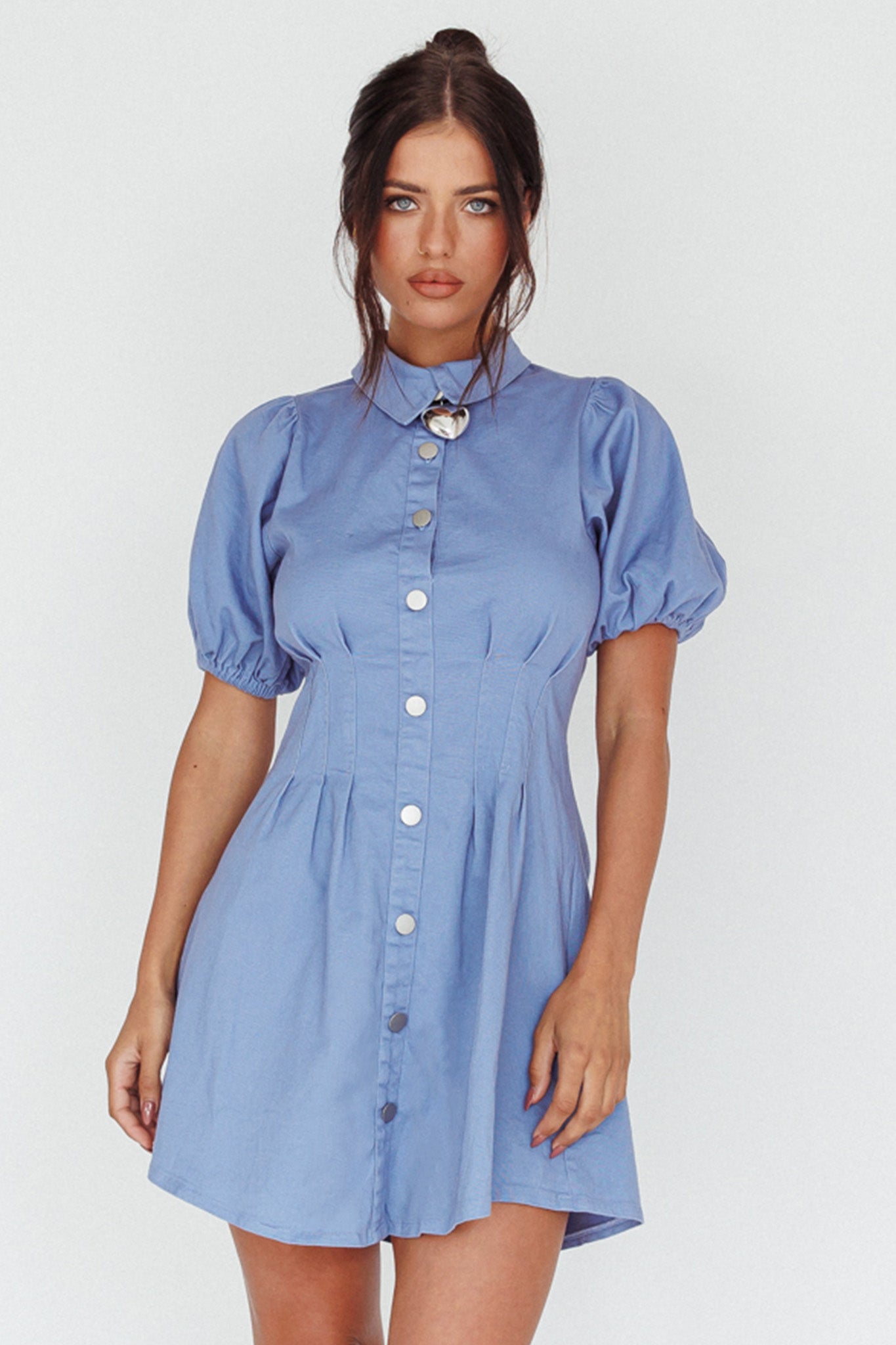 You'll go straight to the best-dressed list in our pretty Zurich mini dress. Featuring a pleated waist and button-up front. It's perfect for your 9-5 or lunch dates with your besties. Team it with boots and a tote for a hot look we are loving.